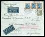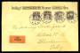 1933. 1 kr. brun/blå i 3-stribe og 20 øre grå på luftpostbrev til Argentina.