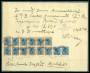 1922. 8/12 øre oliven i 5-blok på brev fra Sæby til Prag.