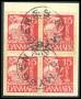 1937. 15 øre rød i 4-blok på klip med udsl. stjerne stp. Myggenæs.