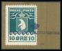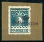 1937. 10 øre grønblå på klip med linie stp. Kolonien Holsteinsborg (29.19).