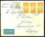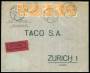 1933. Karavel, 30 Øre, orange (3) samt Bølgelinie 10 Øre, orange (2) på EXPRES brev fra København 6.3.1934 til Zürich, Schweitz.