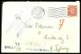 1934. Christian X, 5 Kroner, violet (3), 2 Kroner, brunrød (2) og Karavel 35 Øre violet (2). I alt porto 19,70 kr. sendt fra København 12.9.1939 til den danske Legation i Buenos Aires. Påtegnet "By no...