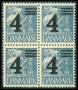 1934. 4/25 øre blå i 4-blok med variant: Afskåret næse på 4.