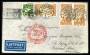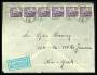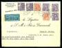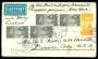1934. Luftpost 1 Krone, brun (6-stribe), 50 Øre, grå, 10 Øre, orange på luftpostbrev fra VALBY, 16.12.1939 til Buenos Aires, Argentna. Omadresseret til det danske konvulat i Syd Afrika, påtegnet Via N...