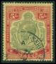 1907. 5 sh. rød/grøn, gullig. AFA 800,-