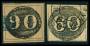 BRASILIEN. 1843. 60 og 90 R. forfalskninger.