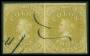 CHILE. 1862. 1 c. gulgrøn i par tangeret blækannulleret. Mi. 100 €