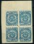 COLUMBIA. 5 c. blå i utakket 4-blok med et omv. mærke.