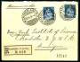 1917-22. Siddende Helvatia, 80 Centimes, grå/rød og 30 Centimes, brun/grøn. Rekommanderet VÆRDIBREV sendt fra BIEL 27.IX.23 til München i Tyskland.