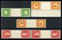 1935. 5, 10 og 15 øre H.C. Andersen i 5 stk. 3-striber. AFA 2060,-