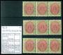 1889. 1 c. grøn/karmin tryk 7 i delt 9-blok med 8 postfriske. AFA 5100,-