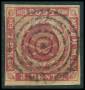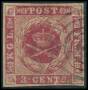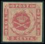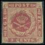1856. 3 c. mørkkarmin gul gummi. AFA 2800,-