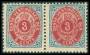 1896-1903. 3 c. blå/rød i par med kilefejl. AFA 1600,-