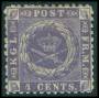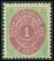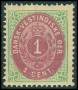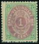 1873. 1 c. grøn/purpurlilla. AFA 2400,-