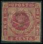1856. 3 c. mørkkarmin brun gummi. Attest LN. AFA 2800,-