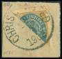 1903. 4 c. brun/blå halveret på klip. AFA 3000,-