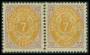 1873. 7 c. lilla/gul i par med ret og omv. rm. løs i perf. AFA 1050,-