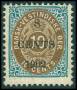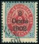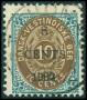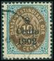 1902. 8/10 c. blå/brun med variant: Punkt mellem T og S. AFA 500,-