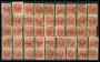 1908. 40 bit rød/grå i 15-blok. AFA 1500,-