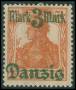 1920. 3 mk/7½ pf. orange lilla nettryk spids nedad. AFA 1500,-