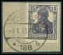 LIBAU. 1919. 15 pf. violet med violetblåt overtryk på klip. AFA 3000,-