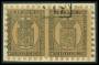 1866-67. Våbentype, 10 Penni, sort på gul (parstykke). Annulleret med ANK på lille brevklip.