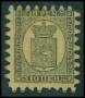 1866-67. Våbentype, 10 Penni, sort på gul. Uden gummi.