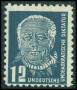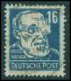1948. 16 pf. blågrøn med variant: Højre øje eksploderet. Mi. (218II) 100 €