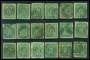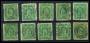 1871. 16 sk. grøn x 18 defekte. AFA 39600,-