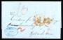 1855. Brev med fuldt indhold sendt fra NEWCASTLE-ON-TYNE 2.NO.1855 til Randers. Påtegnet "via Ostende". Transitstemplet i London 3.NO.1855 og KDOPA HAMBURG 6.Nov.55.