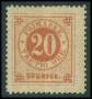 1877. 20 øre orangerød med variant: 2-tal forbundet med cirkel.