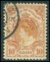 1889. 1 gld. type I, dertil del af normalt mærke til sammenligning.