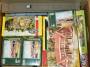 Flyttekasse med 8 Heljan byggesæt samt kasse med samlede bygninger m.m.m.Stand: Byggesættene nye i original æske