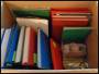 Flyttekasse med 16 bøger, årsmapper, temamapper m.v.