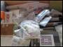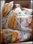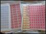 Flyttekasse med løse mærker i poser opdelt landevis.