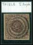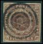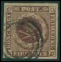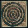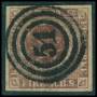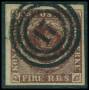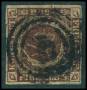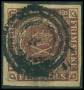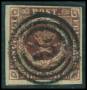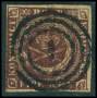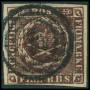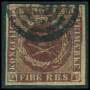 1853. 4 RBS mørk rødbrun med brud på ramme i venstre side over GT.