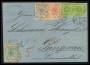 1868. 8 sk. grøn x 2, 2 sk. blå, 3 sk. lilla og 4 sk. rød (klippet på 2 sider) på brev til Schweiz. DAKA 10.000,-