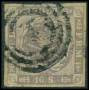 1854. 4 sk. brun tryk 5 med håndskrevet 36. Attest VJ.