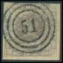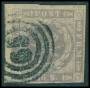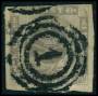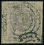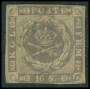 1854. 16 sk. gråviolet med 2 bréde rande og tangeret i sø. AFA 1800,-