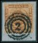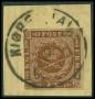 1854. 4 sk. brun privattakket på klip med nr. stp. 2: Hamburg.