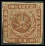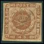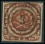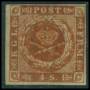 1854. 4 sk. brun med variant: Retoucheret venstre hjørne. Attest GLN. AFA 1800,-