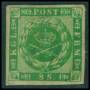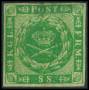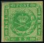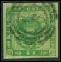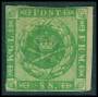 1858. 8 sk. grøn, let beklippet i venstre side. AFA 6200,-