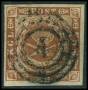 1858. 4 sk. brun. 16 stk. pæne mærker.