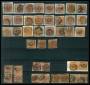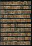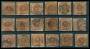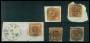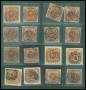 1858. 4 sk. brun x 23 inkl. flere par og 3-stribe i blandet kvalitet.