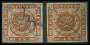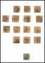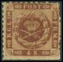 1863. 4 sk. brun x 14 samt 16 sk. med afklippet stikning til venstre.