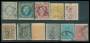 1877-93. Planche med diverse posthorn antiqua inkl. perfin og takninger m.m.