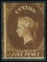 CEYLON. 1857. 5 d. kastaniebrun uden lim, let beklippet i nord og øst. SG. 1600 £