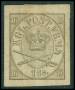 1864. 16 sk. oliven utakket, 2 små tyndheder. Attest Kaiser.
