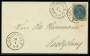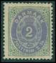 1871. 2 sk. grønliggrå/preussisk blå tryk 2a (kort hjørnetak) matricefejl B på priscourant over søm.
