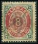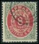 1875-95. 8 øre grå/rød i antal med oval og rammefejl.